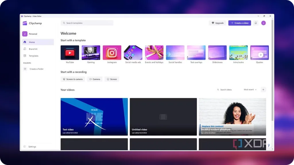 Clipchamp | Quick edits & web-based editing | Integrated with Microsoft 365, templates, basic editing tools | No installation required, user-friendly interface | Limited export options in free version |