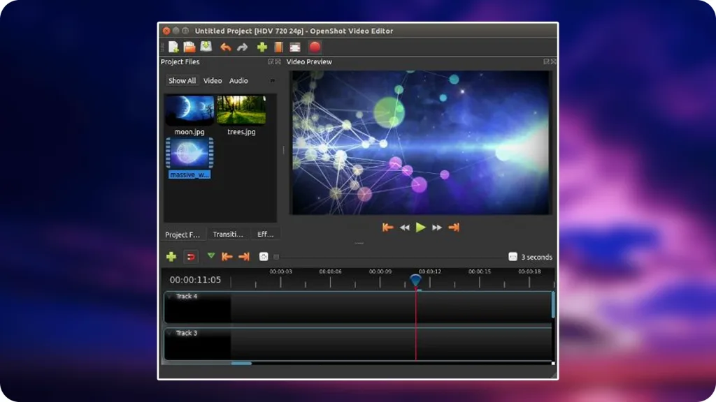 OpenShot | Beginners & open-source enthusiasts | Cross-platform support, unlimited layers, 3D animations, keyframe support | Open-source, simple drag-and-drop interface | Occasional performance issues with large projects |